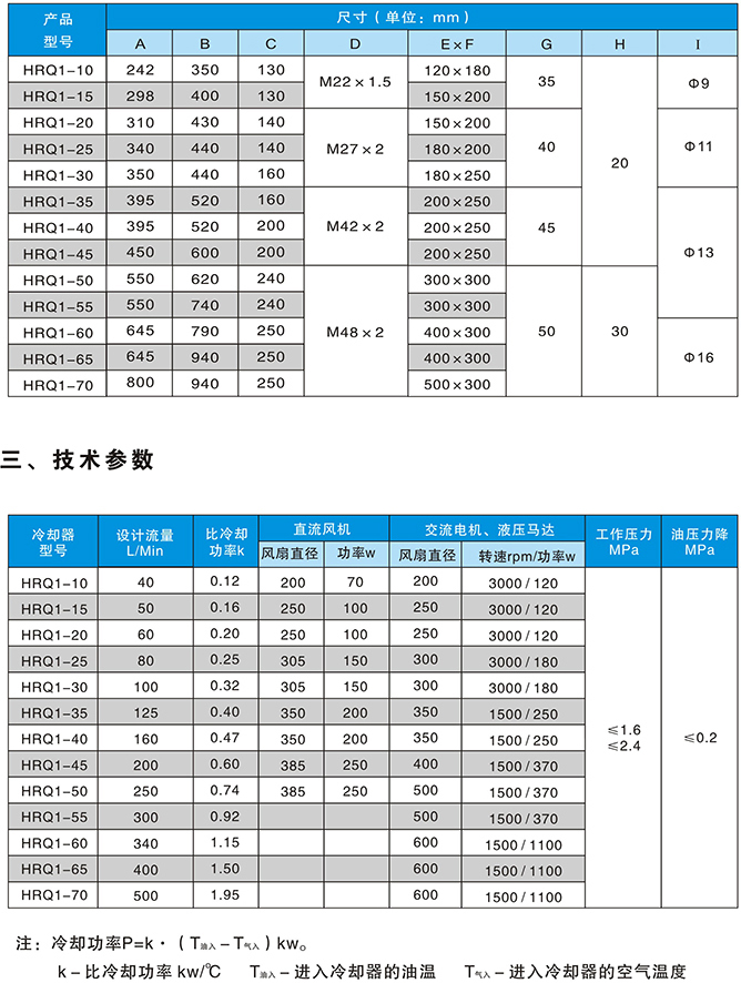 該系列油冷卻器通常由鋁板翅式換熱器、冷卻風(fēng)扇、風(fēng)扇驅(qū)動(dòng)裝置及輔助元件組成。其中,風(fēng)扇驅(qū)動(dòng)裝置有交流電機(jī)、直流電機(jī)和液壓馬達(dá)三種方式可供選擇:在固定場(chǎng)合使用時(shí),應(yīng)盡量選用交流電機(jī);在車(chē)輛或移動(dòng)設(shè)備上使用時(shí)應(yīng)盡量選用直流電機(jī),當(dāng)無(wú)直流電源或直流電源不足以驅(qū)動(dòng)風(fēng)扇時(shí),則可考慮選用液壓馬達(dá)作為風(fēng)扇動(dòng)力。與水冷式油冷卻器相比,該類(lèi)油冷卻器具有使用方便可靠、無(wú)排放物處理、運(yùn)行成本低和壽命長(zhǎng)久等顯著優(yōu)點(diǎn),可用于所有對(duì)鋁無(wú)腐蝕液體的冷卻,如:液壓、液力傳動(dòng)系統(tǒng)的冷卻、潤(rùn)滑系統(tǒng)的冷卻等。